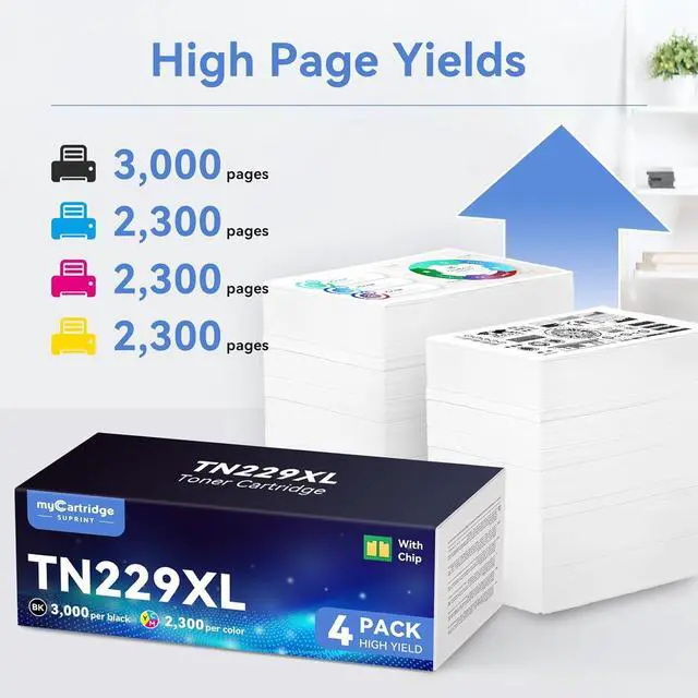 myCartridge SUPRINT TN229XL Toner Cartridge 4 Pack Replacement for Brother TN229 TN229XL Toner Compatible with MFC-L3780CDW MFC-L3720CDW HL-L3220CDW HL-L3280CDW HL-L3300CDW Printer (TN229XLBK/C/M/Y)