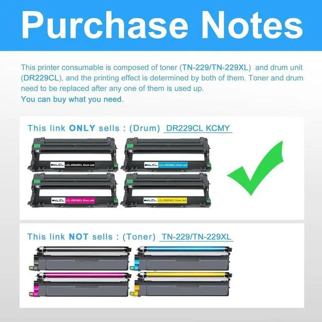 LCL is an online retailer selling of new compatible and re-manufactured INK & TONER CARTRIDGES.Our own factory has successfully managed the manufacturing and marketing of compatible cartridges for over 10 years in both domestic and overseas markets.Next page Drum Unit 4.4 out of 5 starsLCL DR229CL Drum Unit Replacement for Brother DR229CL DR-229CL HL-L3220CDW HL-L3280CDW HL-L3295CDW HL-L3300CDW HL-L8245CDW MFC-L3720CDW MFC-L3765CDW MFC-L3780CDW MFC-L8395CDW Printer (4-Pack KCMY)