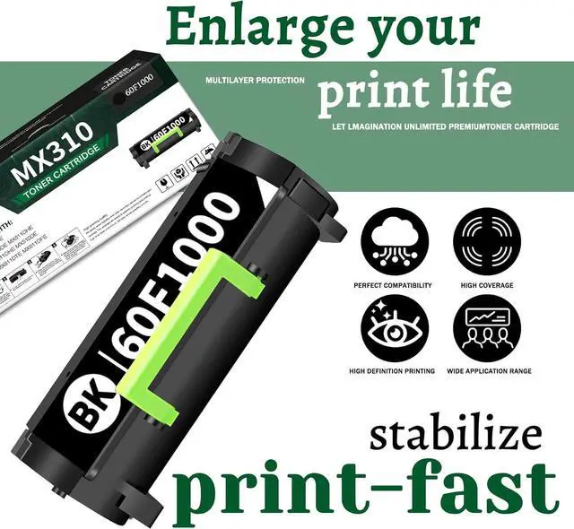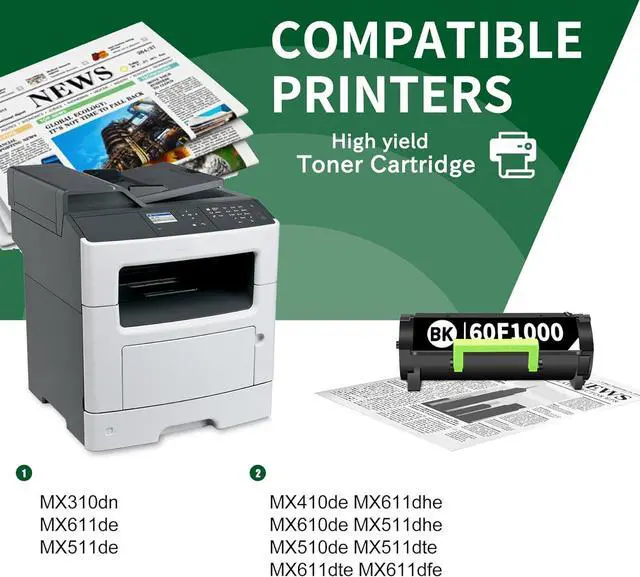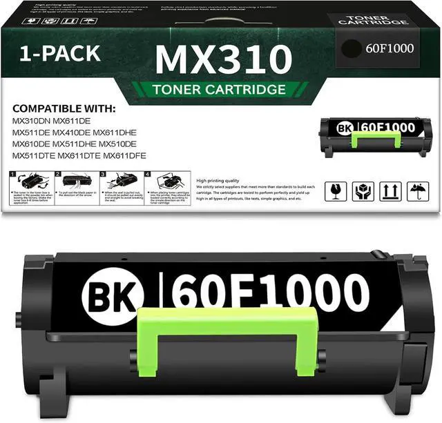 1 Pack MX310 601(60F1000) High Yield Toner Cartridge Compatible for Lexmark MX310dn MX611de MX511de MX410de MX611dhe MX610de MX511dhe MX510de MX511dte MX611dte MX611dfe Printer (10,500 Page Yield)