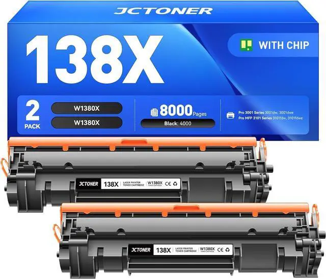 This Item138X Black Toner Cartridge 2-Pack with Chip Compatible for HP138X W1380X 138A W1380A Replacement Laserjet Pro MFP 3001dw 3001dwe 3101fdw 3101fdwe Printer 3101 3001 Laser All-In-One Copier MonochromeRecommendationswith Chip High Yield 138A 138X W1380A W1380X Toner Cartridge Compatible with HP 138A 138X W1380A W1380X for HP Laserjet Pro 3001dw Pro 3001fdw MFP 3101fdw Printers (Black, 2 Pack) 17X Toner Cartridge Black 2-Pack with Chip Replacement for HP 217A CF217A CF217X 17A Compatible with Laserjet Pro MFP M130fw M130nw M130fn M130a M102a M102w M130 M102 Ink Printer All-in-One Drum Unit 138X Black High Yield Toner Cartridge (with Chip) Compatible for HP 138X W1380X 138A Black Laserjet Toner Cartridge Work for HP Laserjet Pro MFP 3101fdw 3001dw Printer (2-Pack) iNKPAD 138A 138X Toner Cartridge Black [with Chip] (2 Pack) Compatible with HP 138A 138X W1380A W1380X High Yield Toner Cartridges for HP Laserjet Pro MFP 3001dw 3101fdw Printer E-Z Ink 138A W1380A Replacement for hp 138A Black Laserjet Toner Cartridge W1380A 138X W1380X Compatible with HP Pro 3001dw 3001fdw MFP 3101fdw Series Printer (with Chip, 2 Black)