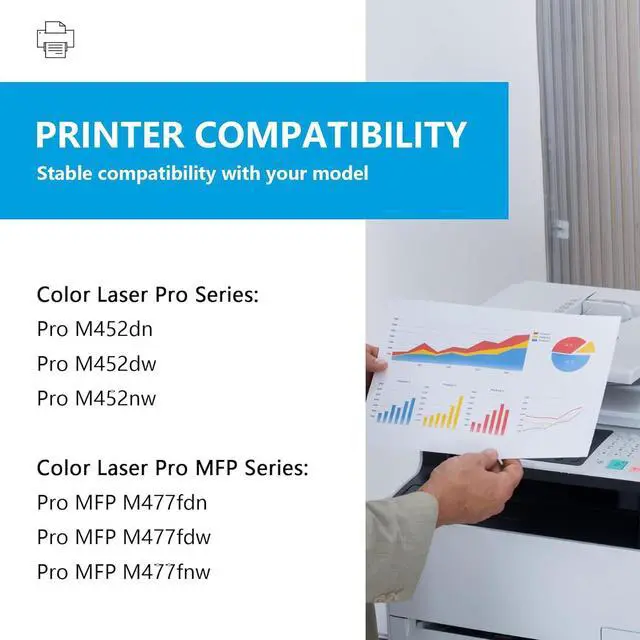 • Compatible Printers: Replacement for HP 410A toner cartridges 4 pack to use with Color Laser Jet Pro MFP M477fdn M477fdw M477fnw M452dn M452dw M452nw Printer toner