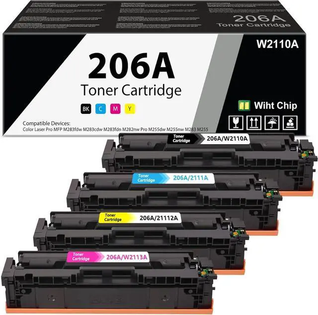 This Item206A Toner Cartridges 4-Pack (C/M/Y/K) with Chip - Compatible 206A 206X Toner Cartridges Replacement for HP Color Laser Pro MFP M283fdw M283cdw M283fdn M283nw Pro M255dw M283 M255 Printer (C/M/Y/K)Recommendations206A Toner Cartridges 4 Pack (with Chip) Replacement for HP 206A 206X Compatible with HP Color Laserjet Pro MFP M283fdw M283cdw M283fdn M282mw Pro M255dw M255nw M283 M255 Printer 202A Toner Cartridges 4-Pack (C/M/Y/K) with Chip - Compatible 202A 202X Toner Cartridges Replacement for HP Color Laser Pro MFP M281fdw M281cdw M281fdn M254dw M254dn Printer 58A CF258A 58X CF258X - with Chip Replacement for HP 58A Toner Cartridge CF258A to Compatible with Pro M428fdw M428fdn M428dw M404 M428 Pro M404n M404dn M404dw Printer (4 Pack)