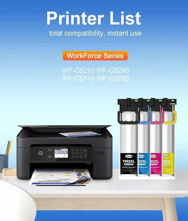 4.4 out of 5 starsJagute 902XL for T902 Remanufactured Ink Cartridges Compatible woks with Latest Upgrade Chip for WF-C5210 WF-C5290 WF-C5710 WF-C5790 color inkjet Printer High Yield Capacity 902 (BK/C/M/Y total 4Pack)