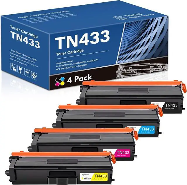 Package included: 1 Black TN433 Toner, 1 Cyan TN433 Toner, 1 Magenta TN433 Toner, 1 Yellow TN433 Toner
