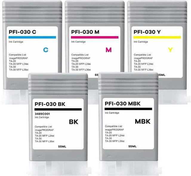 [Package Contents]: 5 -Color Compatible with Canon PFI030 PFI-030 Pigment Ink Cartridge (Black/Matte Black/Cyan/Magenta/Yellow)