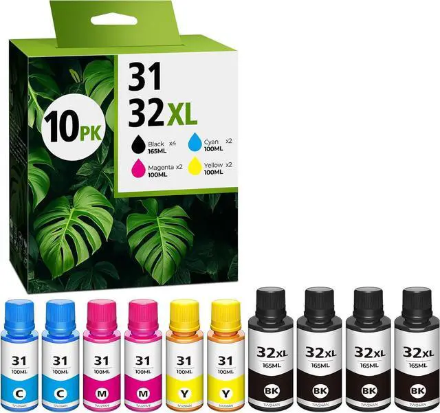 31 Ink Bottle Set 32XL Black Ink Bottle, Compatible for Smart Tank 7602 5101 6001 5000 Ink Refill, Replacement for HP 31 32XL for Smart Tank 5102 5103 7301 7001 Plus 651 551 570 455 457 450, 10 Pack