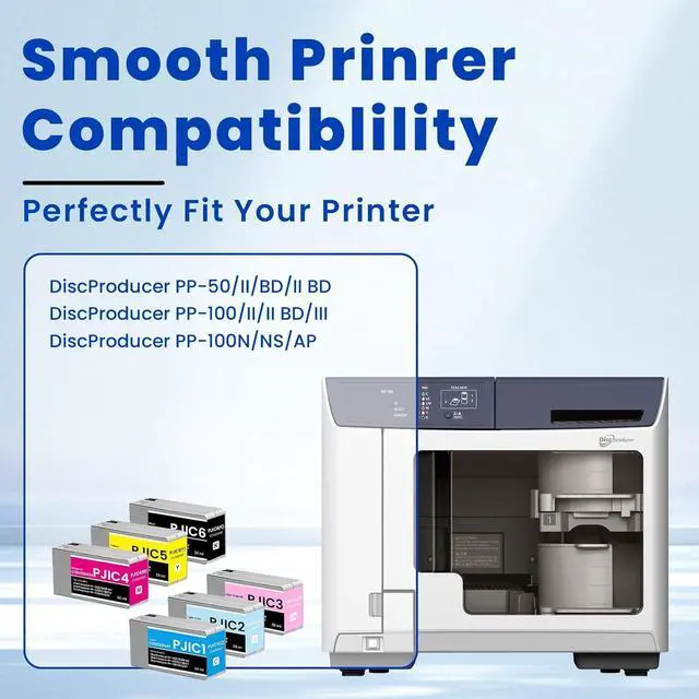 Remanufactured PP-50 PP-100 Ink Cartridge Set PJIC1 PJIC2 PJIC3 PJIC4 PJIC5 PJIC6 Ink Replacement for DiscProducer PP-50 PP-100 Printer Ink (Black, Cyan, Magenta, Yellow, Light Cyan, Light Magenta)