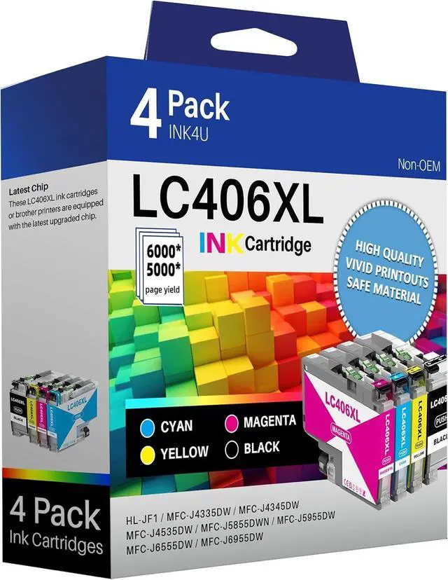 This ItemLC406XL LC406 Ink Cartridge Compatible for Brother LC406XL LC-406 High Yield Work with Brother MFC-J4535DW MFC-J4335DW MFC-J5855DW MFC-J6555DW MFC-J6955DW Printer (Black, Cyan, Magenta, Yellow) 4 PackRecommendationsLC406XL Ink Cartridges Compatible for Brother LC406XL LC406 High Yield Work with Brother MFC-J4535DW MFC-J4335DW MFC-J5855DW MFC-J6555DW MFC-J6955DW Printer(Black, Cyan, Magenta, Yellow, 4Pack) LC406XL Ink Cartridges High Yield Compatible for Brother LC406XL LC406 use to Brother MFC-J4335DW MFC-J4535DW MFC-J5855DW MFC-J6555DW MFC-J6955DW Printer (Black, Cyan, Magenta, Yellow, 4 Pack) LC406 LC406XL Ink Cartridges for Brother Printer LC 406XL 406 XL for MFC-J4335DW MFC-J5855DW MFC-J6555DW MFC-J4535DW MFC-J6955DW MFC-J4345DW MFC-J5955DW - 4 Pack High Yields Black Cyan Magenta Yellow GPC Image Compatible LC406XL High Yield Ink Cartridge Replacement for Brother LC406XL LC406 Ink Cartridges LC 406 XL use with Brother MFC-J4335DW MFC-J4535DW MFC-J5855DW MFC-J6555DW Printer (4 Pack)