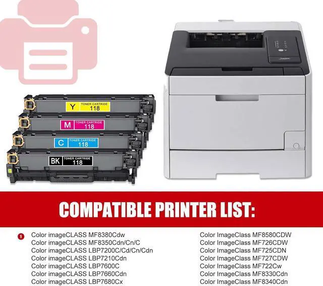 Up to 3,500 pages per 118 2661B001 2660B001 2659B001 C/M/Y toner cartridge (based on 5% coverage of Letter size Paper).