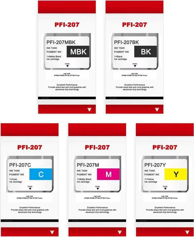This ItemPFI-207 Ink Tank (MBK/BK/C/M/Y, 300ml) Replacement for Canon PFI207 PFI-207MBK PFI-207BK PFI-207C PFI-207M PFI-207Y Ink Cartridge for IPF680/685/780/785 (Matte Black, Black Cyan Magenta Yellow)RecommendationsPFI-102 5-Color Ink Tank (5PK, Matte Black/Black/Cyan/Magenta/Yellow) - Eaxi Compatible PFI-102MBK PFI-102BK PFI-102C PFI-102M PFI-102Y Replacement for Canon IPF500 IPF600 IPF605 IPF700 IPF710 Printer PFI-207 Ink Tank 300ml (5 Pack) PFI 207 Ink Replacement for Canon PFI-207 Color Bundle PFI-207MBK PFI-207BK PFI-207C PFI-207M PFI-207Y Ink Cartridge for imagePROGRAF iPF680 iPF685 iPF780 iPF785 Canon PFI-207 300ml Ink Tank for Canon iPF680/685/780/785, 5 Kit Consits of PFI-207BK (Black), PFI207C (Cyan), PFI207M (Magenta), PFI207MBK (Matte Black), PFI207Y (Yellow) PFI-120 Ink Cartridges Set (5 Pack Black/Matte Black/Cyan/Magenta/Yellow) - VASRINK Compatible PFI-120BK PFI-120MBK PFI-120C PFI-120M PFI-120Y Ink Replacement for Canon TM-205 300 305 200 Printer LCL Compatible Ink Cartridge Replacement for Canon PGI-7 PGI-9 PGI-7BK PGI-9PBK PGI-9C PGI-9M PGI-9Y for Canon IX7000 RFB PIXMA MX7600 iX7000 Printer (5-Pack Black Photo Black Cyan Magenta Yellow) Ink