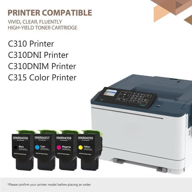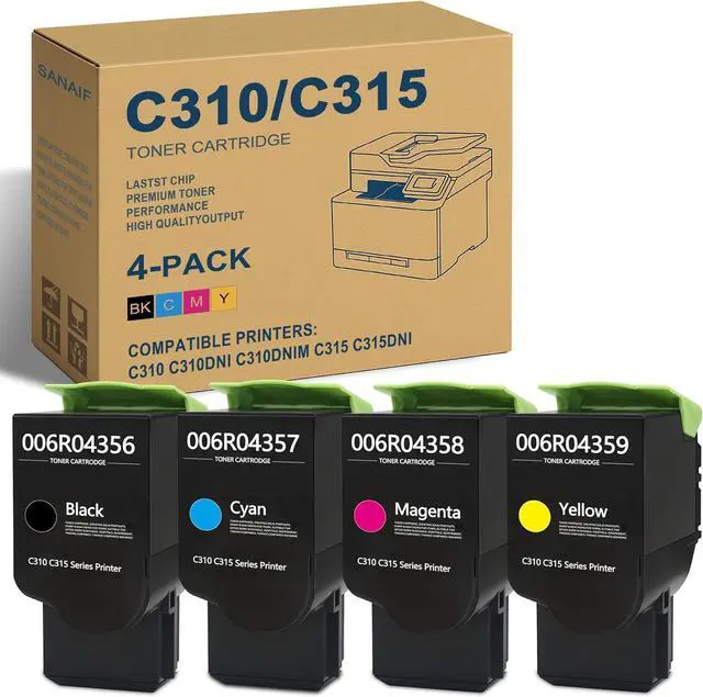 C310 / C315 Black Cyan Yellow Magenta High Yield Toner Cartridge 4/Pack-006R004356 006R004357 006R004359 006R004358 Compatible Replacement for Xerox C310 C310DNI C310DNIM C315 C315DNI Printer Ink