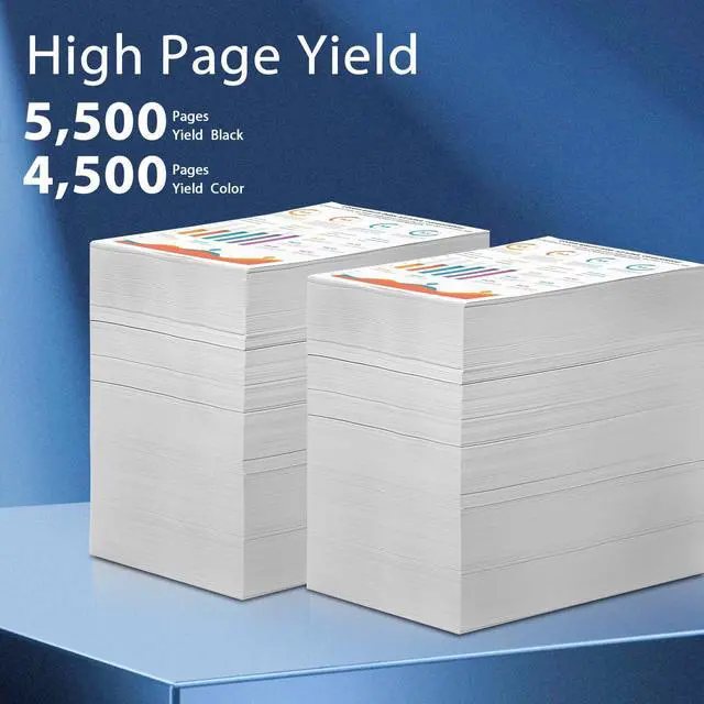 High Page Yield: Up to 5,500 pages per black toner cartridge, Up to 4,500 pages per color toner cartridge at 5% coverage of A4 paper