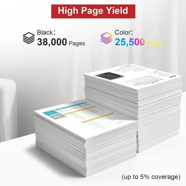 High Page Yield: Up to 38,000 Pages per Black 5753C003AA, 25,500 Pages per Color 5754C003AA 5755C003AA 5756C003AA Toner Cartridge with a coverage rate of 5% (Letter/A4)