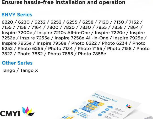 Printer Compatibility: HP ENVY 6220, 6230, 6232, 6252, 6255, 6258, 7120, 7130, 7132, 7155, 7158, 7164, 7800, 7820, 7830, 7855, 7858, 7864, 7200e, 7210s, 7220e, 7252e, 7255e, 7258e, 7925e, 7955e, 7958e, 6222, 6234, 6252, 6255, 7134, 7155, 7158, 7822, 7832, 7855, 7858e, HP Tango, Tango X