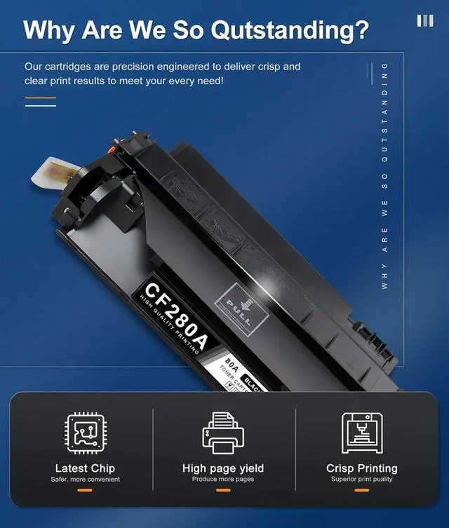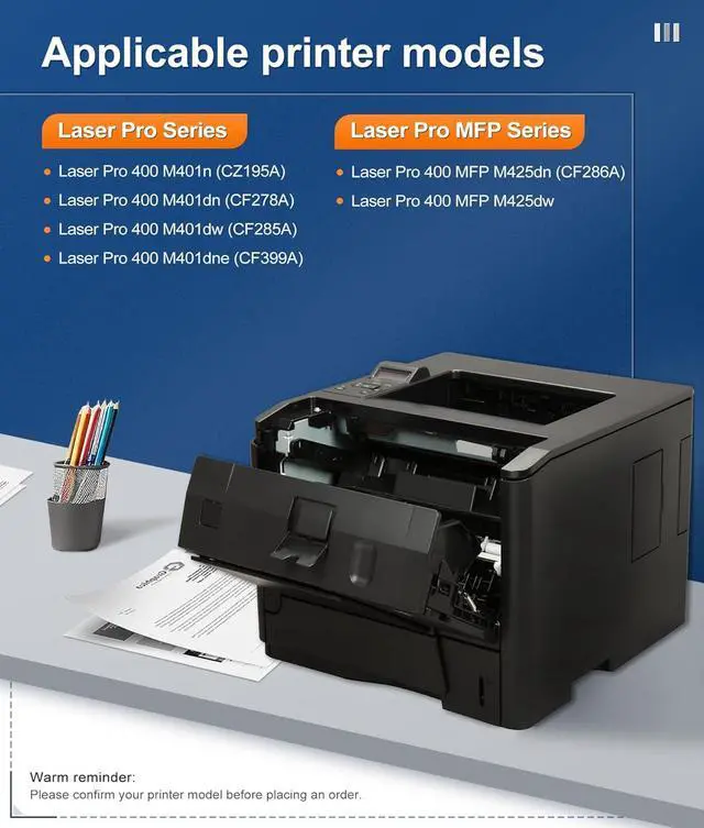 This Item80A Toner Cartridge Black High Yield Replacement for HP 80A CF280A 80X CF280X Toner Cartridge Works with Laser Pro 400 M401n M401dn M401dw M401dne Laser Pro 400 MFP M425dn M425dw Printer (3 Pack) Recommendations148X Toner Cartridge Black High Yield 2 Pack (with Chip) Compatible 4101fdw Toner Replacement for HP 148X W1480X Laser Pro 4001 4001dn 4001dw, MFP 4101 4101fdn 4101fdw Printer Ink 87X Toner Cartridge 2-Pack High Yield CF287XD, 87A Black Toner Replacement for HP 87X CF287X 87A CF287A Works with Laser Enterprise Laser Enterprise MFP M527, M506 Series, Pro M501 Series Printer 305X Toner Cartridge Replacement for HP 305X 305A CE410X with Chip High-Yield Toner Works with Laserj Pro 400 Color M451dw M451dn M451nw MFP M475dw M475dn M375nw Printer(Black, Cyan, Magenta, Yellow) 410X Toner Cartridge Replacement for HP 410A 410X CF410X Black High-yield Toner Cartridge Works with Color Pro MFP M452dn M452dw M452nw M477fnw M477fdw M477fdn M377dw Printer, with Upgraded Smart Chip 80X Toner Cartridge Black High Yield Replacement for 80X CF280X 80A CF280A to Compatible with HP Pro Laserjet 400 M401A M401D M401N M401DN M401DNE M401DW, Pro 400 MFP M425SN M425DW Printer (2 Packs)