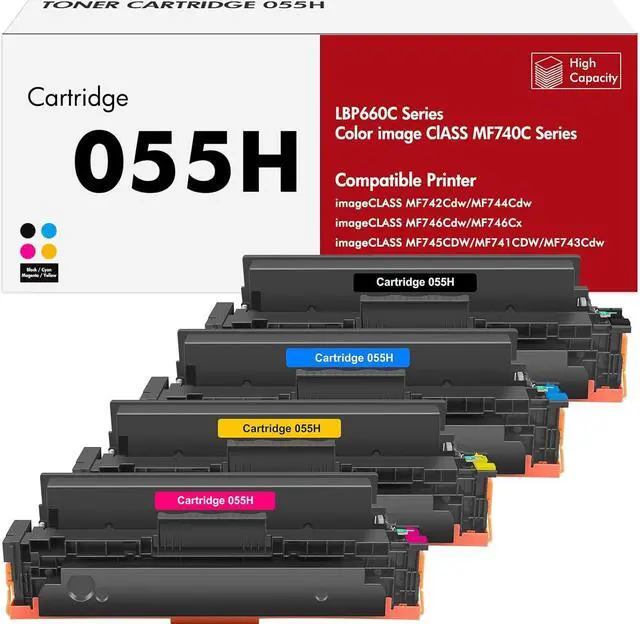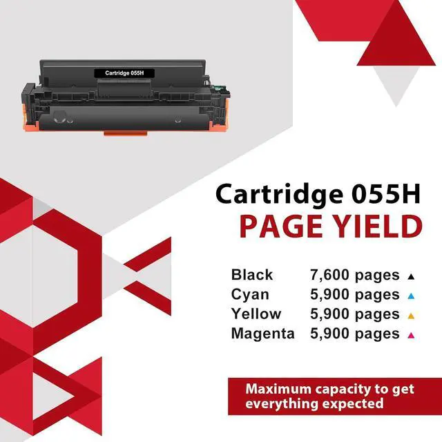 High Page Yield: 7,600 pages for 055H black toner and 5,900 pages for 055H color toner at 5% coverage (Letter/A4) compatible for Canon 055 high capacity toner cartridge and for Canon MF743Cdw toner cartridges