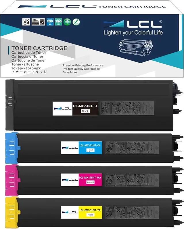 This ItemLCL Compatible Toner Cartridge Replacement for Sharp MX-51NT MX-51NTBA MX-51NT-BA MX-51NTCA MX-51T-CA MX-51NTMA MX-51NT-MA MX-51NTYA MX-51NT-YA MX-4110N MX-4111N MX-4140N MX-4141N MX-5110N (KCMY) RecommendationsSkyPrint MX51NT MX-51NT Toner Cartridge Replacement Sharp MX-51NTBA MX-51NTCA MX-51NTMA MX-51NTYA use for Sharp MX-4110N MX-4111N MX-4140N MX-4141N MX-5110N MX-5111N MX-5140N Printer SCCOLOR MX-51NT MX51NT Toner Cartridge Compatible MX-51NT MX-51NTBA MX-51NTCA MX-51NTMA MX-51NTYA Replacement for Sharp MX-5110N MX-5111N MX-5140N MX-5141N MX-4110N MX-4111N MX-4140N MX-4141N MEGOFFICE Compatible Toner Cartridge Replacement for Sharp MX61NT MX-61NT MX-61NTBA MX-61NTCA MX-61NTMA MX-61NTYA for MX3071 MX3070N MX3051 MX3050 MX2651 MX3570N MX2630 MX3550N MX3050 (BCMY, 4-Pack) YiBoton MX61NT MX-61NT Toner Cartridges MX-61NT-BA MX-61NT-CA MX61NT-MA MX-61NT-YA Compatible for Sharp MX-2651 MX-3051 MX-3061 MX-3071 MX-3551 MX-3561 MX-3571 MX-4051 MX-4061 Printer (4-Pack) Sharp MX-51NT-BA MX-4110 4111 4140 4141 5110 5111 5140 5141 Toner Cartridge (Black) in Retail Packaging