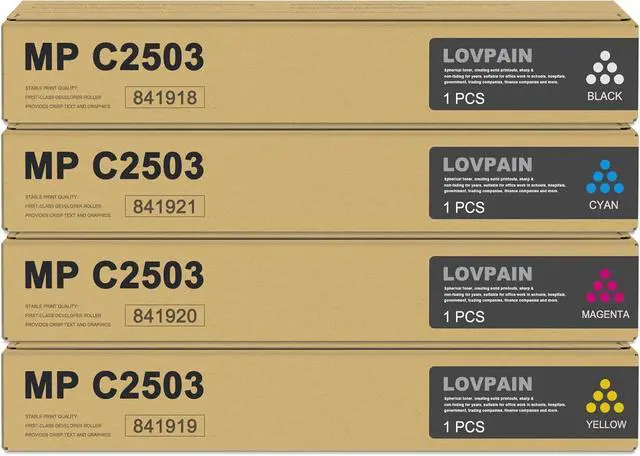 Previous pageNext pageThis ItemMP C2503 High Yield Toner Cartridge (4-Pack, Black/Cyan/Magenta/Yellow) - Lovn Compatible C2503H 841918 841921 841920 841919 Toner Cartridge Replacement for Ricoh MP C2003 C2004 C2503 C2504 PrinterRecommendationsMasaiMara 842091 842092 842093 842094 MP C306 C307 Compatible Toner Cartridge Replacement for Ricoh C406 C407 High Yield (Black Cyan Magenta Yellow, 4-Pack) MP C306 MP C406 Toner Cartridge High Yield 842091 842092 842093 842094 Toner Compatible for MP C306 MP C307 MP C406 MP C407 Printer (4 Pack,Black Cyan Magenta Yellow) Do It Wiser Compatible Printer Toner Cartridge Replacement for Ricoh MP C307/MP C407 - 4Pack High Yield (Black, Cyan, Magenta, Yellow) GREENBOX MP C2003 C2503 High Yield Toner Cartridge Replacement for C2503H 841918 841921 841920 841919 Toner for Ricoh Aficio MP C2003 C2004 C2503 C2504 MP C2011 Printer (4 Packs,B/M/C/Y) Juyudow MP C2003 C2503 Toner Cartridge Compatible for Ricoh Aficio Lanier Savin MP C2503 C2003 C2004 C2504 (BCMY, 4-Pack) Part#: 841918 841919 841920 841921 High Yield