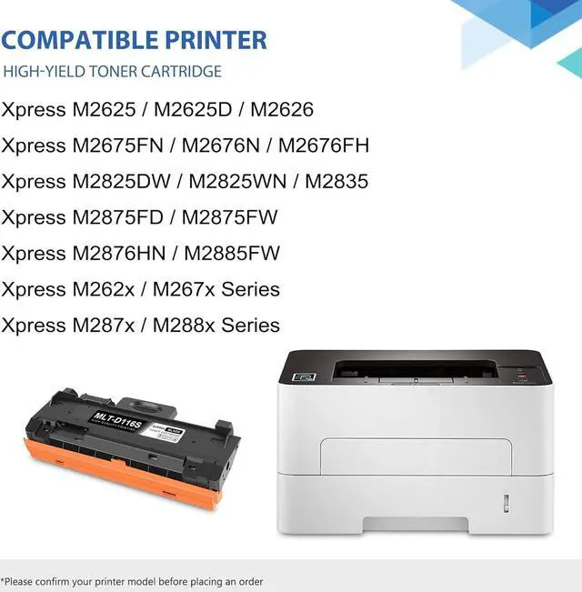 This ItemMLT-D116S 2 Pack Blk Toner Crtg, MLT-D116S Black Toner Cartridge Replacement for Samsung MLT-D116S Toner Works with Xpress M2625/2626/2825/2826/2835/2836; Xpress M2675/2676/2875/2876/2885/2886 SeriesRecommendations1-Pack MLTD116S MLT-D116S Black Toner Cartridge Replacement for Samsung D116S M2825DW M2825WN M2835 M2675FN M2676FH M2625 M2626 M2885FW M2876HN M288x Printer MLT-D116S Toner Cartridge (2 Pack, Black) Replacement for Samsung D116S Toner for Xpress M2825DW, M2825WN, M2835, M2675FN, M2676N Printer Toner CLYWENSS Compatible Toner Cartridge Replacement for Samsung 116L MLT-D116L for Xpress SL-M2835DW SL-M2625D SL-2825DW SL-M2875FD SL-M2885FW Printer (Black, 2-Pack) [1-Pack, Black] MLT-D116S D116S Toner Cartridge Compatible Replacement for Samsung Xpress M2825DW 2825WN 2835 675FN 2676N 2676FH 2875FD 2625 2625D 2626 2885FW 288x 262x 267x 287x Series Printer