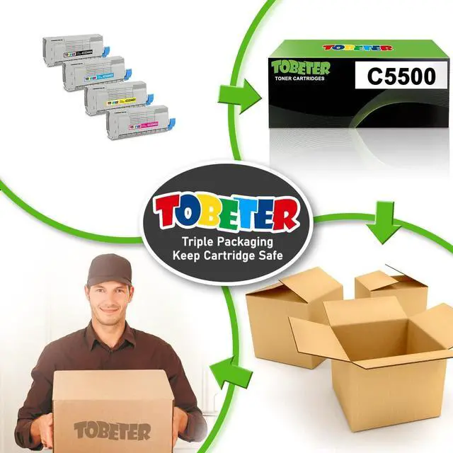 Strive for ExcellenceIntegrityLong-term ThinkingGood After-Sales SupportNext page Toner Cartridge ToBeter Compatible C5500 Toner Replacement for OKI 43324404 43324403 43324402 43324401 Toner Cartridge for Okidata C5500 C5600 C5700 C5800 C5950 C5650DN C5650N C5800N (5,000 Pages, 4 Pack, BK/C/M/Y)