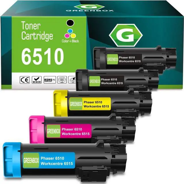 This ItemGREENBOX Remanufactured 6510/6515 106R03480 106R03690 106R03691 106R03692 Toner Cartridge Replacement for Xerox Phaser/WorkCentre 6510DNI 6510DN 6510N 6510DNM (5-Pack, Black Cyan Magenta Yellow)RecommendationsPhaser 6510 WorkCentre 6515 High Yield Toner Cartridge Set ( 4-Pack, Black/Cyan/Magenta/Yellow ) 106R03480 106R03477 106R03478 106R03479 Toner Replacement for Xerox Phaser 6510 WorkCentre 6515 Printer EF Products Compatible for Xerox Phaser 6510 WorkCentre 6515 Toner Cartridge (Black 106R03480, Cyan 106R03477, Magenta 106R03478, Yellow 106R03479) (6510 4PK) GREENBOX Remanufactured 6510 6515 106R03690 Cyan Toner Cartridge Replacement for Xerox Phaser WorkCentre 6510 6515 6510DNI 6510DN 6510N 6510DNM Printer (1Pack) Phaser 6510 WorkCentre 6515 Toner Cartridge Replacement for Xerox 106R03480 106R03477 106R03478 106R03479 Toner Cartridge for Phaser 6510 WorkCentre 6515 Printer Ink 4-Pack (BK/C/M/Y) Workcenter 6515 Phaser 6510 Extra High Toner Cartridge (4-Pack, Black/Cyan/Magenta/Yellow), 106R03490 106R03491 106R03492 106R03480 Toner Replacement for Xerox WorkCentre 6515 Phaser 6510 Printer
