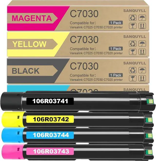 Toner Cartridge Help others learn more about this product by uploading a video!5.0 out of 5 starsSANQUYLL C7030 Toner Cartridge Compatible for Xerox Versalink C7020 C7025 C7030 Replacement for 106R03741 106R03742 106R03743 106R03744( Black,Cyan,Magenta,Yellow)