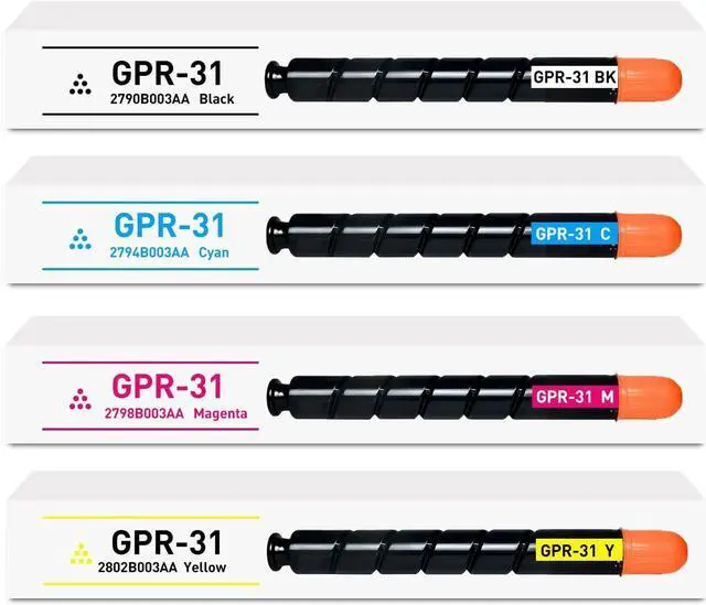Package Content: 4-Pack of canon gpr-31 gpr31 high yield toner cartridges. including 2790b003aa 2802b003aa 2798b003aa 2794b003aa