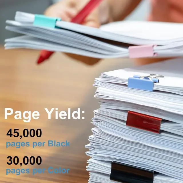 Page Yield: Print up to 45,000 pages per black, 30,000 pages per color toner cartridge at 5% coverage on letter/a4