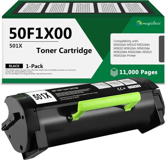 This Item501X 50F1X00 Extra High Yield Toner Cartridge [11, 000 Pages] Compatible for 501XE 50F1X0E Toner Cartridge Replacement for Lexmark 50F1X00 Toner Cartridge Work with MS410, MS510, MS610, MS415 PrinterRecommendations501H (50F1H00) High Yield Black Toner Cartridge 2-Pack Replacement for Lexmark MS310 MS310dn MS312 MS312dn MS315 MS315dn MS410 MS410dn MS415 MS415dn MS510 MS510dn MS610 MS610dn Printer 501H 50F1H00 High Yield Toner Cartridge (5, 000 Pages) for Lexmark MS310dn MS310d MS312dn MS315dn MS410dn MS415dn MS510dn MS510dtn MS610dn MS610de Compatible for Lexmark 50F1000 Ink Cartridge (Black) TIW Lexmark MS710n, 52D1H00 Replacement Black Toner Cartridge for Lexmark MS710 MS710N MS710DN, MS711DN Printers High Yield 25, 000 Pages.
