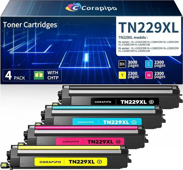 Premium Quality: Corapipo TN229XL toner work for TN229XL TN229 TN229XXL toner cartridge, produce sharp, professional-quality text and graphics with consistent toner coverage,because we have a strict quality testing procedure to ensure quality and compatibility with your printers