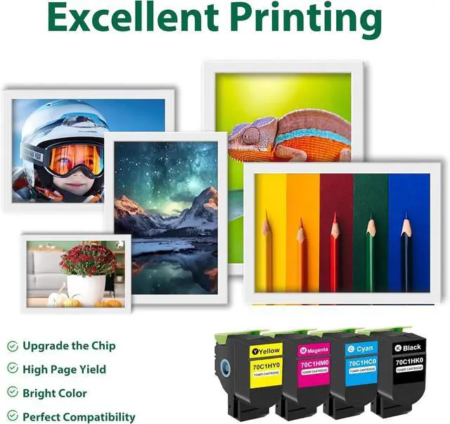 Remanufactured CS310 Toner Cartridge - CS310 toner cartridge with 4 pack (Black/70C1HK0, Cyan/70C1HC0, Magenta/70C1HM0, Yellow/70C1HY0), upgraded materials and chip bring the perfect printing experience