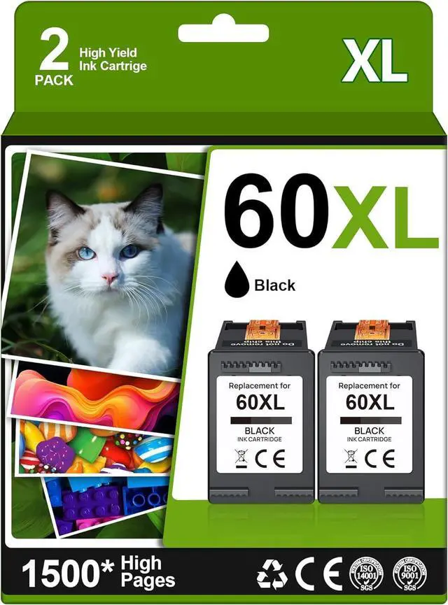 60XL Ink Cartridges for HP Printers (2 Black) for HP 60 Black Ink Cartridge for HP 60XL Works with PhotoSmart D110 C4780 C4680 C4795 Deskjet D2680 F2430 F4210 Envy 100 110 111 120 Series | CC641WN