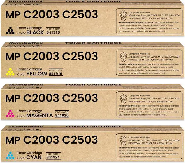 Reliable Quality Assurance: Rest easy knowing our MP C2003 C2503 toner cartridges are ISO-9001 and ISO-14001 certified for stable, Premium-quality printouts every time. Whether it's documents, presentations, or photos, you can trust our cartridges to deliver consistent results