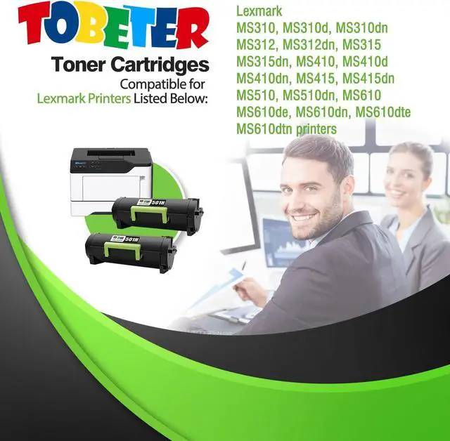 Previous pageStrive for ExcellenceIntegrityLong-term ThinkingGood After-Sales SupportNext page Toner Cartridge ToBeter 501H 50F1H00 High Yield Toner Cartridge for Lexmark MS310 MS312 MS315 MS410 MS415 MS510 MS610, MS310dn MS312dn MS315dn MS410dn MS415dn MS510dn Printer Toner,5,000 Pages,2 Pack 501H Black Toner