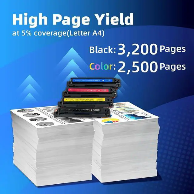 High Page Yield: Up to 3,200 pages per 202X black Toner Cartridges and 2,500 pages per 202X Color Toner Cartridges (5% coverage)