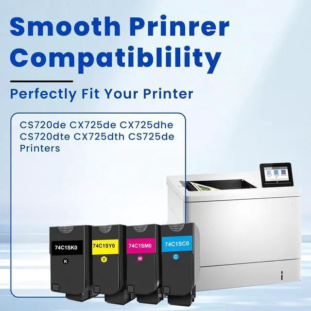 Vylent CX725 CS725 74C1SK0 74C1SC0 74C1SM0 74C1SY0 4 Pack High Yield Toner Cartridges Replacement for Lexmark CS720de CX725de CX725dhe CS720dte CX725dth CS725de Printers