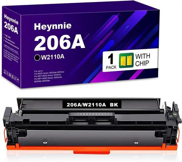 Heynnie 206A Remanufactured Toner Cartridge (with Chip) Replacement for HP 206X 206 A W2110A W2110X Toner Cartridges for MFP M283fdw M283cdw Pro M255dw M255nw Printer(1 Black)