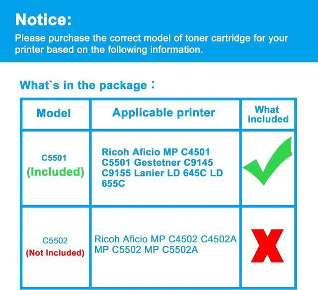 Toner Cartridge Page 11Previous pageNext pageLCL Compatible Toner Cartridge Replacement for Ricoh 841582 841452 841453 841454 841455 MP C4501 C5501 C9145 C9155 LD645C LD655C High Yield Aficio MP C4501 C5501 (4-Pack KCMY)