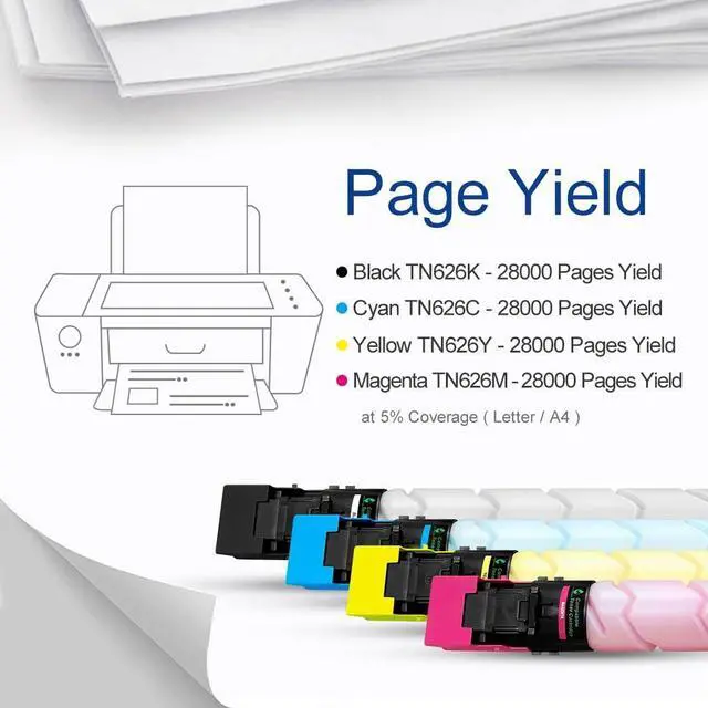 Package Contents: 1 Black-TN626K (ACV1130); 1 Cyan-TN626C (ACV1430); 1 Magenta-TN626M (ACV1330); 1 Yellow-TN626Y (ACV1230) Compatible Toner Cartridges