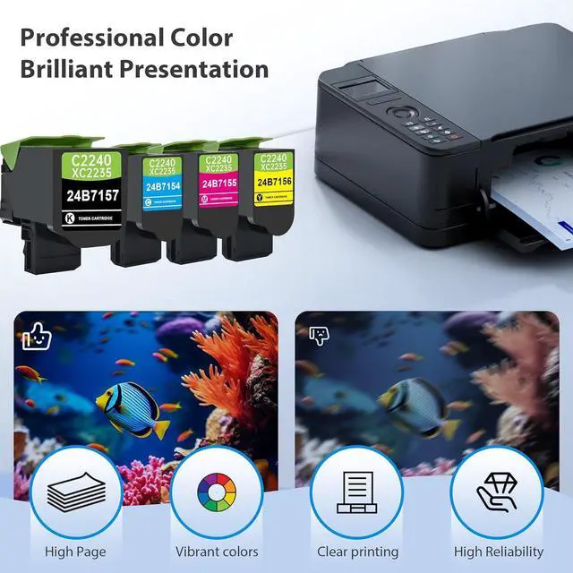 Previous pageNext pageHelp others learn more about this product by uploading a video!C2240 XC2235 Remanufactured Toner Cartridge (Black Cyan Magenta Yellow) 24B7157 24B7154 24B7155 24B7156 Compatible for Lexmark C2240 XC2235 Printer, 4-Pack