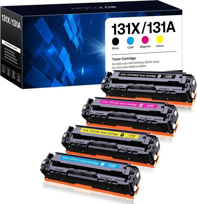 Package Includes: 131a toner cartridge 4 pack - CF210X(A)(Black), CF211A( Cyan) , CF212A (Yellow), CF213A (Magenta) Toner.