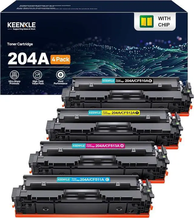 This ItemKEENKLE Compatible Toner Cartridge Replacement for HP 204A HP204A CF510A CF511A CF512A CF513A Compatible with Laserjet Pro MFP M154 M154a M154nw M180n M180nw M181 M181fw Printers (4 Pack) Recommendations204A Toner Cartridge, Compatible for HP 204 A CF510A CF511A CF512A CF513A for HP Color Laserjet Pro MFP M180nw M180n M154nw M154a MFP M181fw Printer, Black Cyan Yellow Magenta ( 4 Pack ) GPC Image Compatible Toner Cartridge Replacement for HP 204A 204 A CF510A CF511A CF512A CF513A to use with Color Laserjet Pro MFP M180nw M154nw M180n M154a MFP M181fw Printer (4 Pack) Valuetoner Compatible Toner Cartridge Replacement for HP 204A CF510A CF511A CF512A CF513A to use with Color Laserjet Pro MFP M180nw M154nw M180n M154a MFP M181fw Printer Tray(4-Pack) SANUNE 204A Toner Cartridge (with Chip) Replacement for HP 204A 204 CF510A CF511A CF512A CF513A Toner Cartridge for HP Color Laser Jet Pro MFP M180nw M154nw M180n M154a MFP M181fw Printer Ink (4 Pack) 204A Toner Cartridges 4 Pack (High-Yield; with