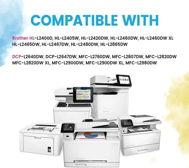 CompatibilityCompatible with Brother HL-L2400D, HL-L2405W, HL-L2420DW, HL-L2460DW, HL-L2460DW XL, HL-L2465DW, HL-L2467DW, HL-L2480DW, HL-L2865DW, DCP-L2640DW, DCP-L2647DW, MFC-L2760DW, MFC-L2807DW, MFC-L2820DW, MFC-L2820DW XL, MFC-L2900DW, MFC-L2900DW XL, MFC-L2980DW Printers.