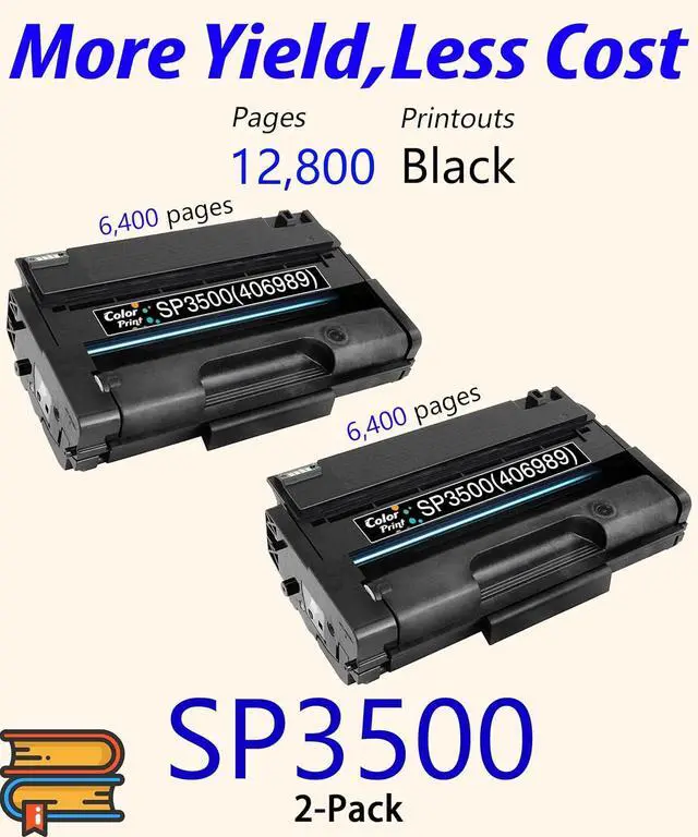 • Package Contents: 2-Pack Toner Replacement Compatible with Ricoh 406989 SP3500 (2x Black, High Yield)