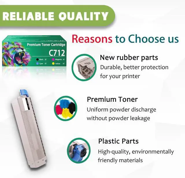Compatible printers For OKI C712 C712n C712dn printers. Toner volumes C712 Cyan toner cartridge: 10,000 pages. Package Contents: C712 Cyan toner cartridge 1 pack. Product Information: Each toner cartridge weighs 1kg and measures 35cm *8cm *12cm. Printing experience: This toner cartridge print is stably tested, provides outstanding results with clear fonts and realistic images, and ensures delivery of sharp text and vivid bright color. Stable output, easy to install, ready to use, safe and environmentally friendly, giving you a healthy environment. Warm Tips 1. Due to the different toner cartridge models in different regions, please confirm your toner cartridge model and send us a photo of your printer when you buy a toner cartridge. (Prevent buying a toner cartridge that is not compatible with your printer) 2. Make sure not to touch the chip on the toner cartridge to get the best performance. 3. Please note that if prompted with a non-original message, simply click OK or Continue to continue and start using the toner cartridge.