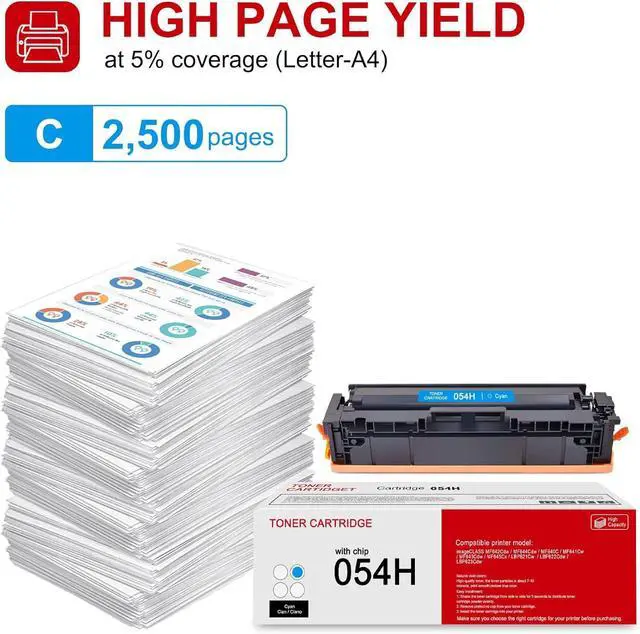 2,500 pages per 054H C cyan toner cartridge (Based on up to 5% coverage)
