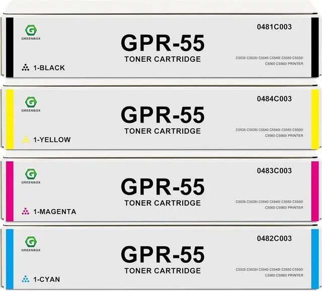 GREENBOX Remanufactured GPR55 High Yield Toner Cartridge Replacement for Canon GPR-55 GPR55 0481C003 0482C003 0483C003 0484C003 for C5535 C5535i C5540 C5540i C5550 C5550i C5560 C5560i Printer (4 Pack)