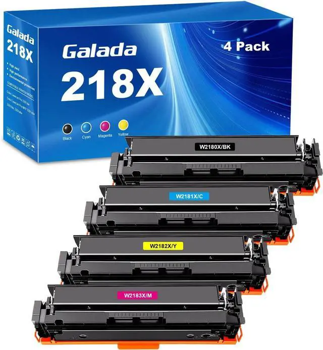 Toner Cartridge Page 11Previous pageNext pageGalada 218X Toner Cartridge Remanufactured Replacement for HP W2180X W2181X W2182X W2183X 218A for 3201dw MFP 3301cdw 3301fdw 3301sdw Printer (4Pack, Black/Cyan/Yellow/Magenta, No Chip)