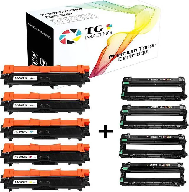 Make sure the machine is turned onRemove the used toner cartridge and drum unit from the machine.Push down the green lock lever and take the toner cartridge out of the drum unit.Gently shake the cartridge from side to side.Remove the orange protected cartridge. And Clean drum unit by sliding the green tab from left to right and right to left several times.Put the Toner back in, Push the new toner cartridge firmly into the drum unit until you hear it lock into place.drum unit by sliding the green tab from left to right and right to left several times.Install the toner cartridge and drum unit assembly back into the machine.After replacing a toner cartridge, DO NOT turn off the machine or open the front cover until the machine's display returns to Ready Mode. TN221 Black TN225 Cyan Magenta Yellow DR221 Drum Black: 2,500 pages; Color: 2,200 pages; Drum: 15,000 pages