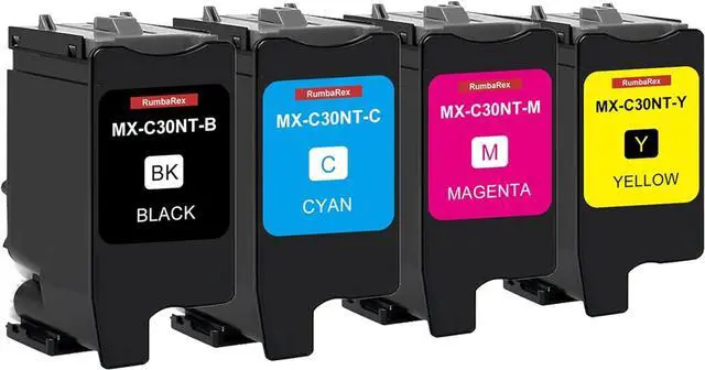 The Package Contains: MX-C30NT MXC30NT Toner Cartridges 4-Pack (Black Cyan Magenta Yellow) MXC30NTB MXC30NTC MXC30NTM MXC30NTY